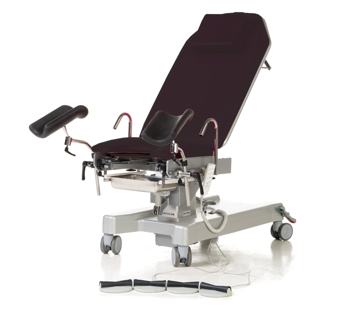 Den nya gynstolen har tre motorer, så både höjd, sätesvinkel och ryggstöd regleras elektriskt via hand- eller fotkontroll. Sladdlös fotkontroll finns som tillval.