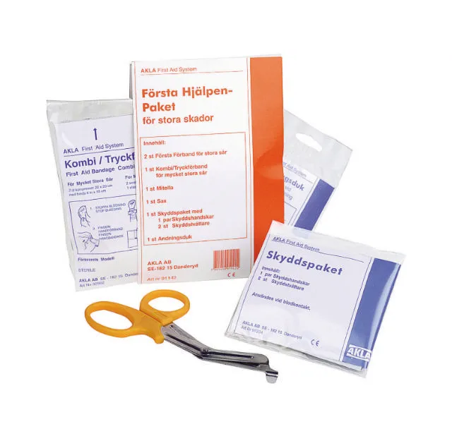 Ett komplett Första Hjälpen-paket för stora skador och för hög beredskap som lämpligen placeras tillsammans med bår, eller används som påfyllning i Första Hjälpen-lådor. Viktiga produkter att ha lätt tillhands när det är en stor skada som snabbt behöver tas om hand. Produkterna är packade i en påse – modell minigrip för att den ska vara lätt att öppna och återförsluta.