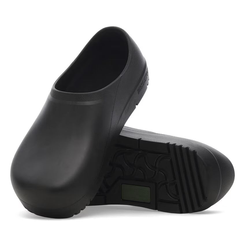 Polyuretan-tofflan Profi Birki 2.0 passar utmärkt till arbete inom flera olika branscher. Den populära tofflan har ett något uppdraget hälparti och skyddar hela foten samtidigt som den ger stöd och stabilitet. Det flexibla PU-materialet har en slät yta som är både olje-/fettbeständig och vatten- och smutsavvisande. Detta göra Profi Birki 2.0 till en perfekt arbetssko inom kök och restaurang. När det gäller sulans utformning ställer BIRKENSTOCK höga krav på säkerheten: Den flexibla PU-sulan är direktapplicerad och har en något djupare profil som ger ett stadigt grepp på många olika underlag. Alla som är på benen långa stunder i sitt arbete uppskattar hög komfort, något som säkerställs genom den anatomiska BIRKENSTOCK-fotbädden. Fotbädden är utbytbar och har ett överdrag av hygieniskt mikrofibermaterial. Detta gör också egna inlägg kan användas i Profi Birki 2.0-tofflan. Tofflan kan tvättas i upp till 80 °C och fotbädden kan tvättas i upp till 60 °C ,vilket bidrar till hög hygienfaktor.