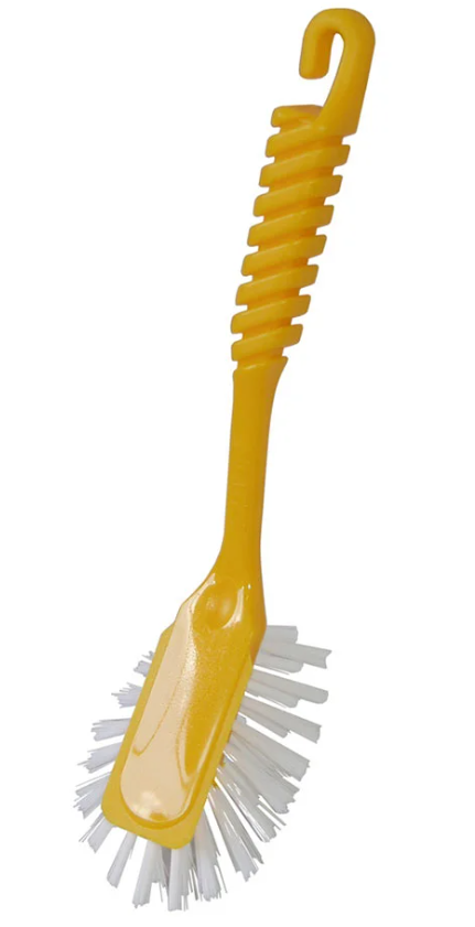 Borsten har ett ergonomiskt grepp och skrapkanter som underlättar rengöring av t.ex. stekpannor och grytor.