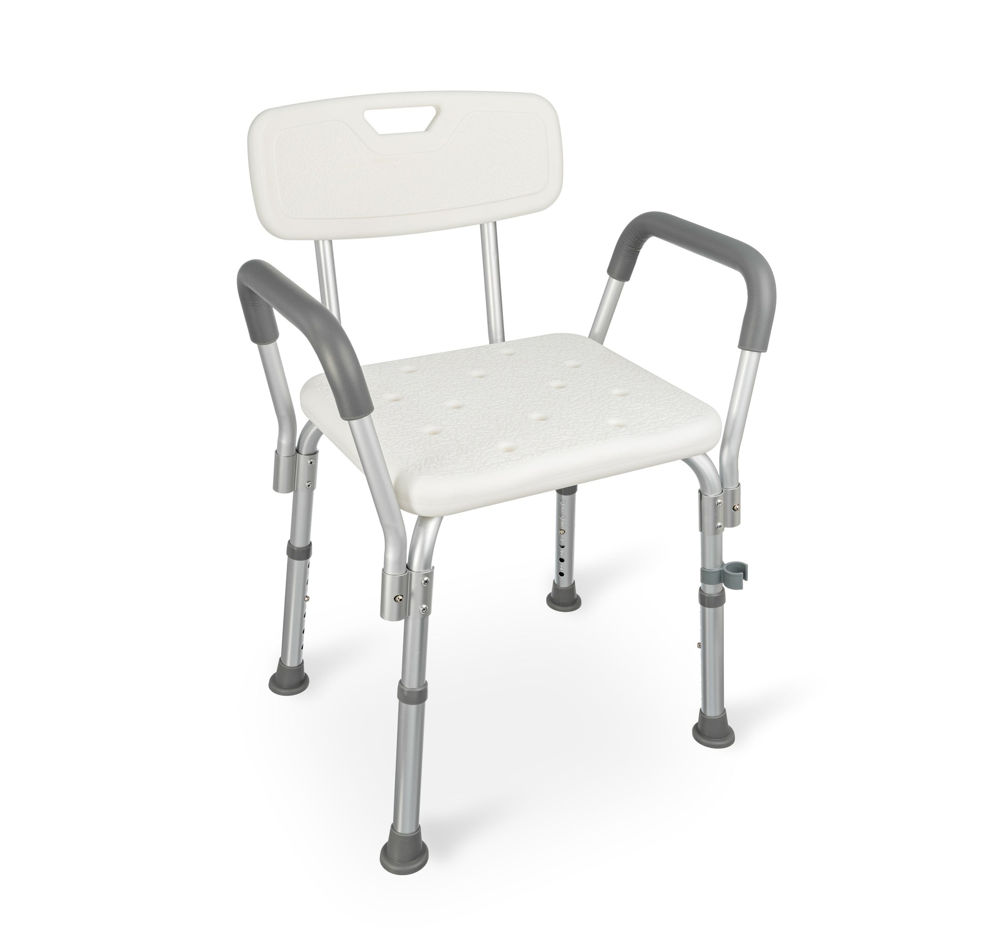 En duschpall med ryggstöd och handtag är idealisk för äldre och funktionshindrade personer som har problem med vardagliga rörelser och detta hindrar dem från att utföra dagliga aktiviteter, inklusive morgontoalett. Duschpallen har handtag täckta med skummaterial, vilket är perfekt för personer som har svårt att resa sig själv . En ytterligare fördel är det avtagbara ryggstödet och armstöden samt höjdjusteringen.
