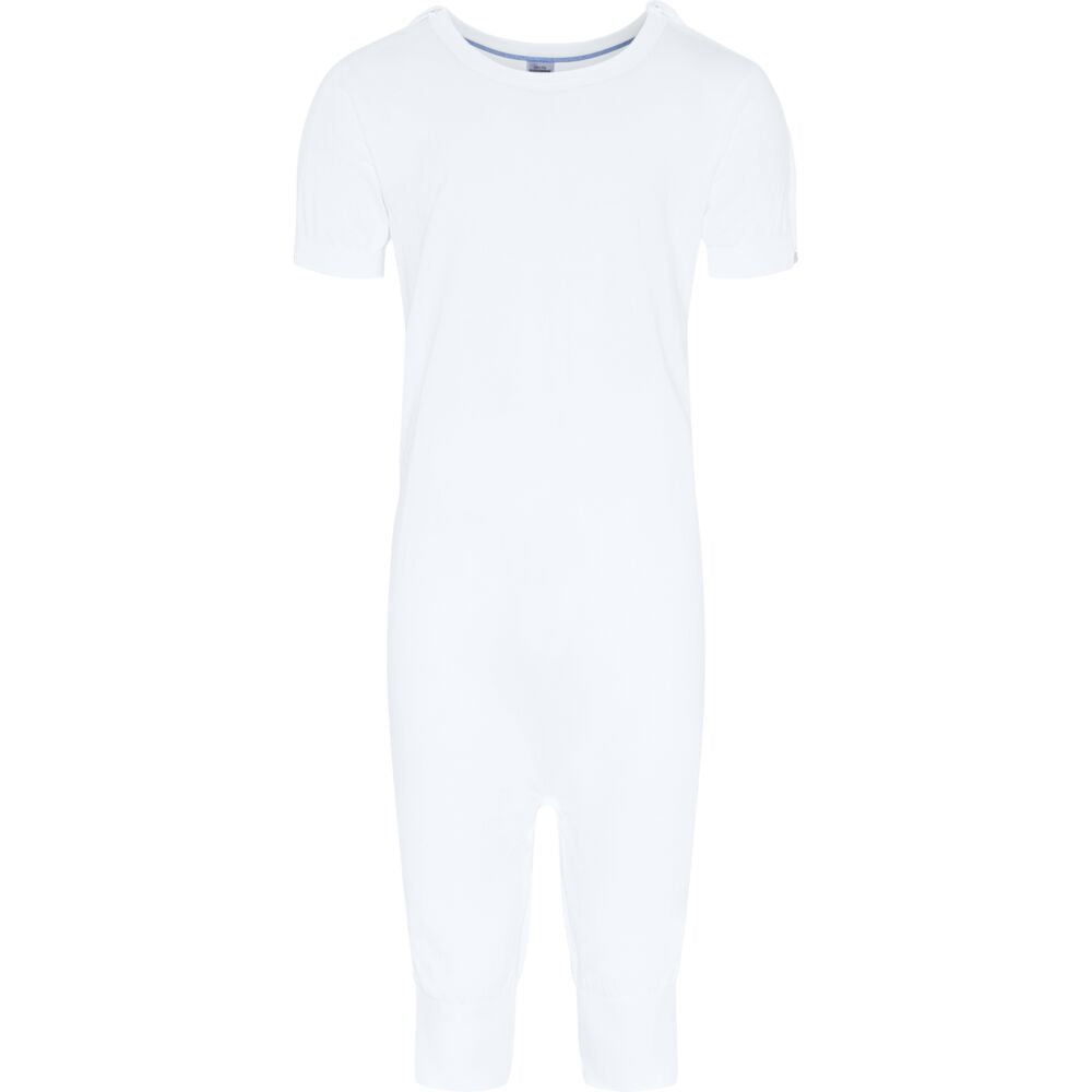 Produkt i tyg för fixering av inkontinensskydd, tas på som en body. ABENA Fix Bodystocking är en mjuk och smidig body tillverkad i bomull med ärmar och ben. Bomullsmaterialet transporterar bort fukt från huden, så att användaren hela tiden känner sig torr och bekväm. Diskreta dragkedjor vid ben, gren och axlar underlättar på- samt avtagning och justeringar. Dragkedjan är täckt, vilket skyddar huden mot irritation. Storlek och tvättråd anges på plaggets tvättrådsetikett. ABENA Fix Bodystocking har en färgkod på kragen för enkel produktidentifiering. Och på förpackningen finns det också information om produktnamn, storlek, tvättråd och materialsammansättning. Tillverkad i 75 % bomull, 20 % polyamid och 5 % elastan.