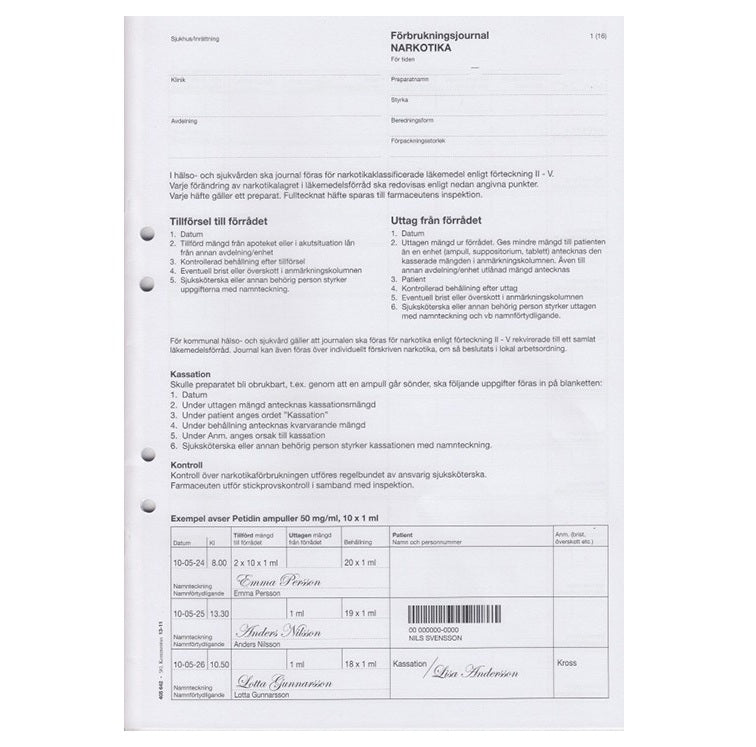 A4-Häfte om 16 sidor, ett häfte för varje preparat. Narkotikaklassificerade läkemedel enl förteckn II - V.
