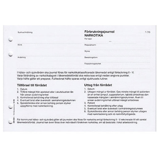 Förbrukningsjournal Narkotika A5L 16sidor