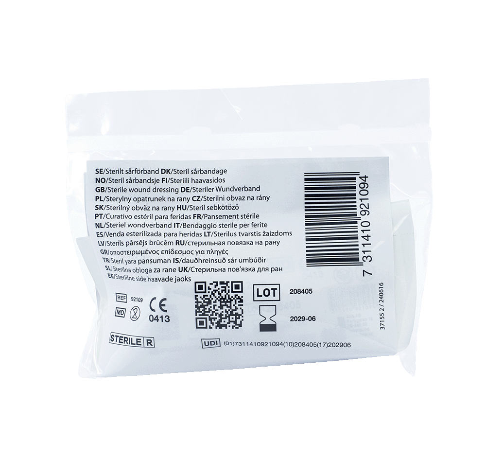 Sterilt första förband i CELLOSOFT-material som är hudvänligt och ej vidhäftande.