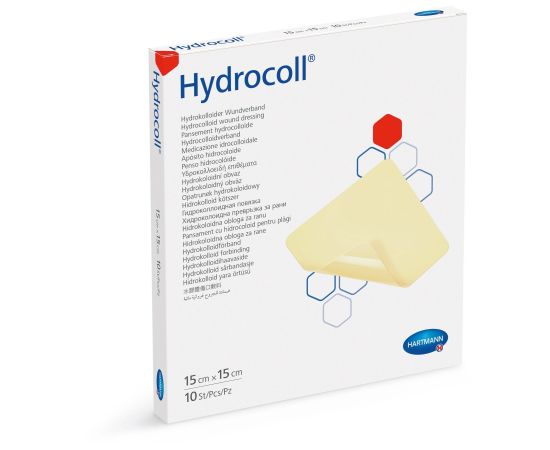 Hydrocoll är ett självhäftande, absorberande hydrokolloidförband med semipermeabel ovansida som är ogenomtränglig för vätska och bakterier. Hydrokolloiden bildar en gel när den kommer i kontakt med exsudat och skapar en fuktig sårmiljö som stimulerar granulation och epitelisering. Finns i fem olika storlekar för olika användningsområden. Användning: Används för fuktig sårläkning av lätt till måttligt vätskande sår som inte är kliniskt infekterade. Särskilt lämpligt för sår med dålig läkningstendens och långvarig granulationsbildning, t.ex. bensår eller trycksår, andra gradens brännskador. Hydrocoll sacral används för trycksår i sakralområdet och Hydrocoll concave för hälar eller armbågar.