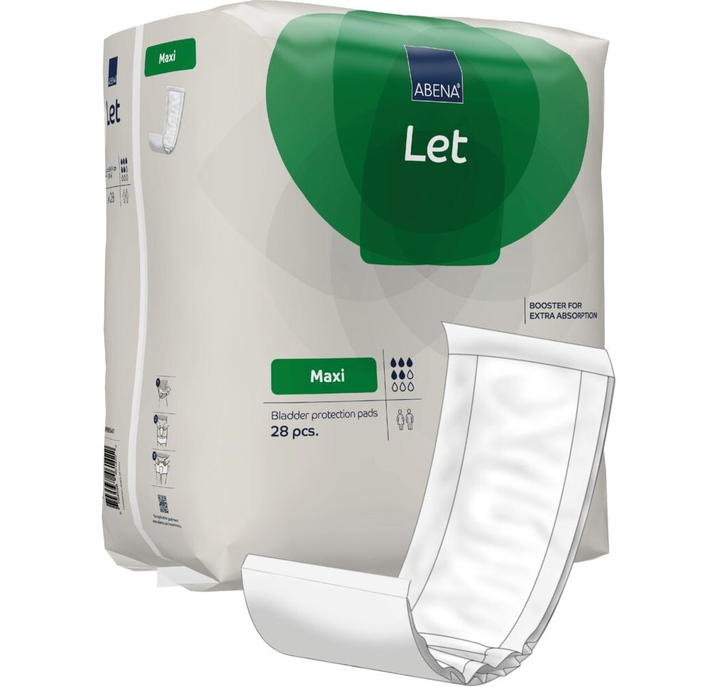 ABENA Let-produktsortimentet är en rektangulär lösning för breda applikationer. Både ABENA Let Airlaid Super, Normal och Maxi används främst som förstärkningsskydd för att ge extra absorption, men kan också användas som en förlossningsbinda eller fungera som et sekundärt absorberande skydd för andra kroppsvätskor. De helt andningsbara kuddarna med en non-woven baksida hjälper till att bibehålla frisk hud och säkerställa optimal komfort för användaren. De finns i olika storlekar och absorptionsnivåer. ABENA Let Normal och Airlaid innehåller båda superabsorberande polymer (SAP) som en del av odörsystemet.