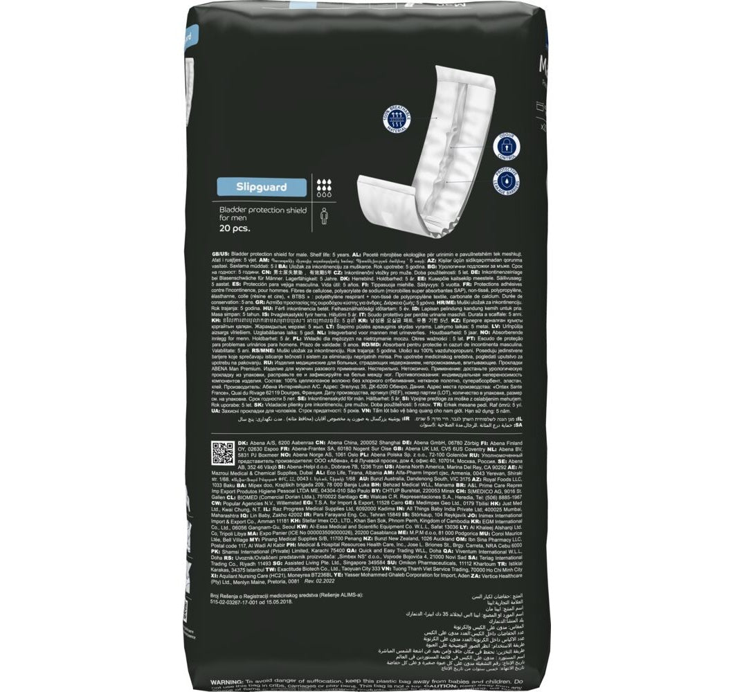 ABENA Man Slipguard är vår Premium skydd, speciellt utformad för män för att ge diskret skydd vid måttlig inkontinens. Det andningsbara rektangulära skyddet hjälper till att bibehålla en frisk hud och erbjuder en utmärkt passform för män. Produkterna är utrustade med läckagebarriärer för extra skydd, och odörsystemet minimerar oönskad lukt.