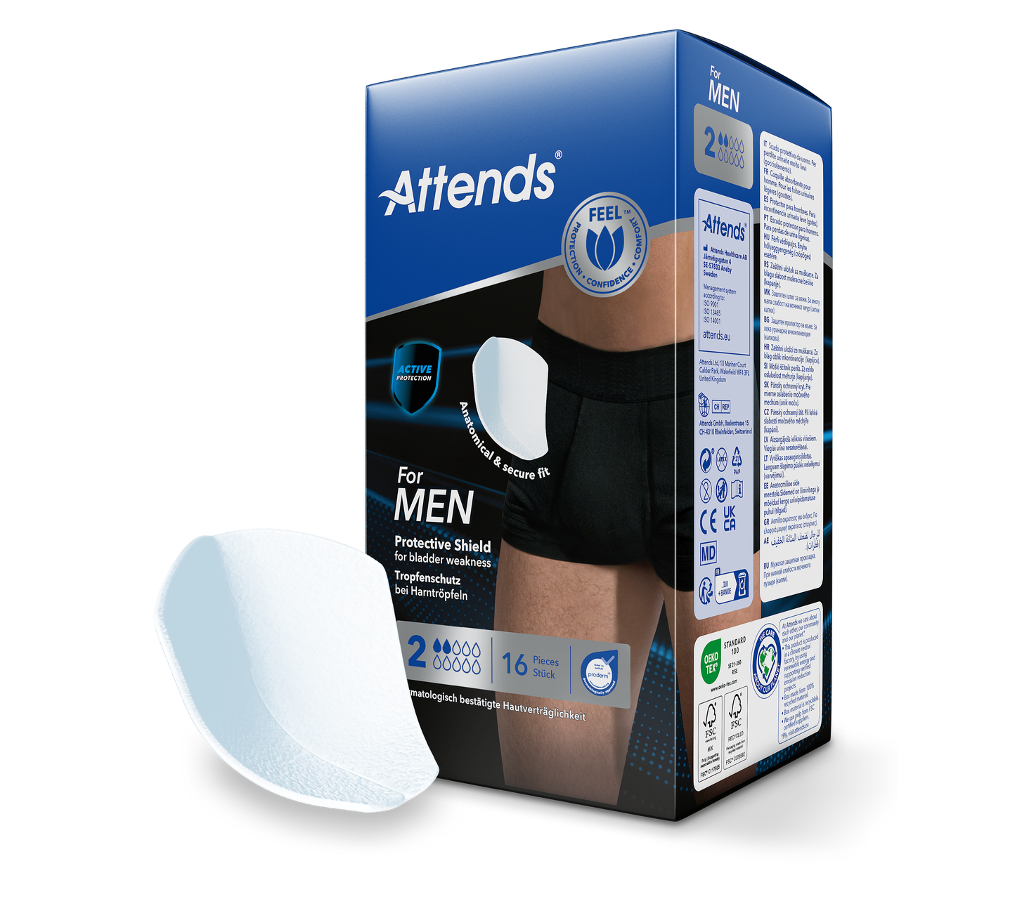 Attends For Men 2 är diskreta och komfortabla droppskydd utformade för män med lätt urininkontinens. De är kroppsformade och så komfortabla att du nästan glömmer bort att du bär dem.