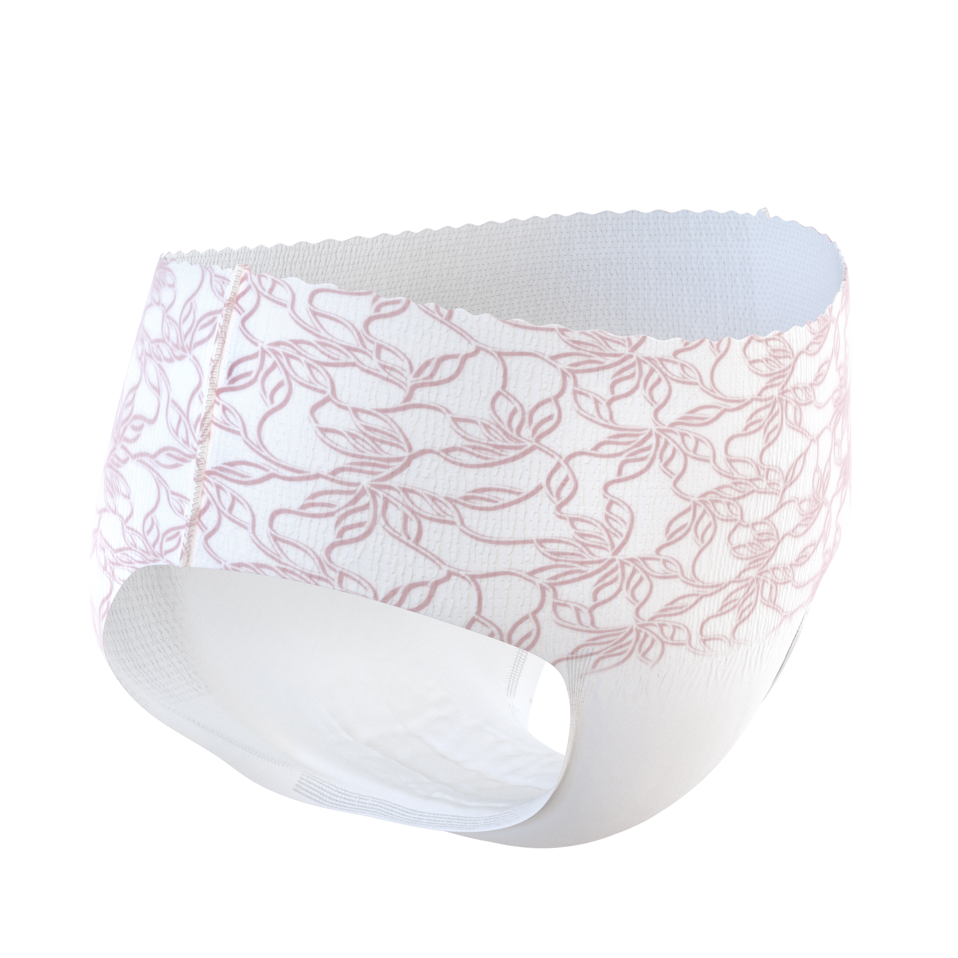 Med en tunn och diskret design och låg midja passar trosorna bekvämt under kläderna så att du kan klä dig hur du vill, när du vill. En unik vågformad midja och elegant feminint mönster gör att de här absorberande engångsunderkläderna ser ut precis som trosor så att du kan känna dig elegant och feminin utan att kompromissa med ditt skydd.
