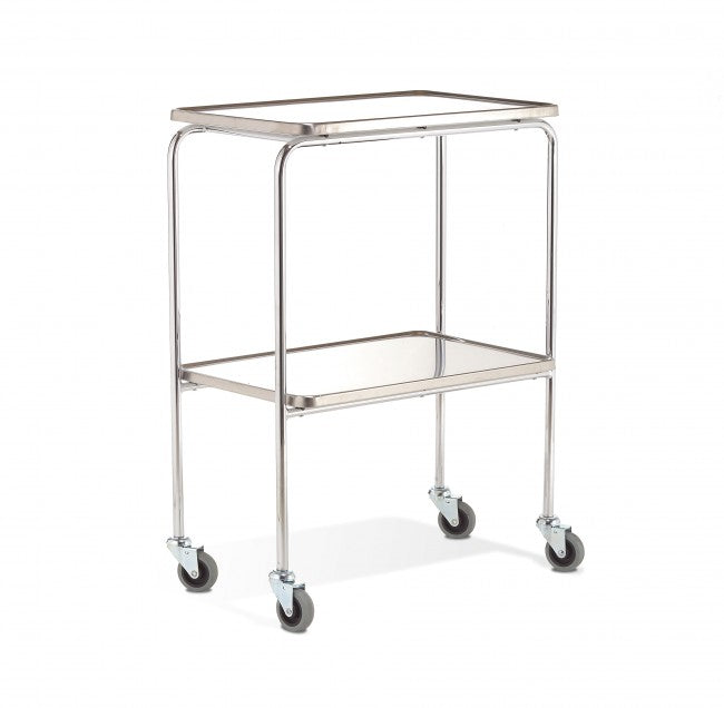 Instrumentbord med helsvetsade förkromade stålrör och fasta skivor i rostfri plåt med vulstkant. Plastbelagd board på skivornas undersida för effektiv ljuddämpning. Hjul: 75mm länkhjul med grå gummibana. Mått: Höjd 85cm. Avstånd mellan skivorna 37cm.Välj mellan fyra olika skiv storlekar.