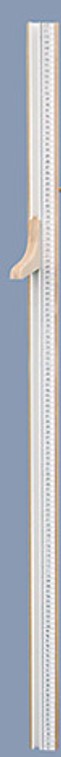 Lackerat Millimetergraderat med svarta siffror på vit botten. Avläses med ställbar löpare som glider i en plastprofil. Uppsättes 75 cm från golvet med fyra skruvar i väggen. Passbit, längd 75 cm. används vid uppsättning av personmåttet. Enstyckesförpackad