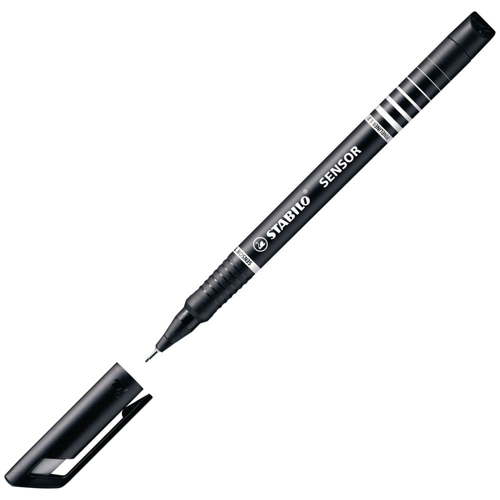 Denna STABILO® finelinerpenna med en unik metallinkapslad spets med dämpning som anpassar sig till olika skrivtryck är perfekt för daglig användning. Den rundade aluminiumkroppens eleganta utseende kompletteras av en ventilerad kork med en praktisk fickklämma så att du kan bära den med dig. STABILO® sensor® har en supertunn spets som inte böjs eller bryts av så att du kan skriva avslappnat och bekvämt. Den långa spetsen gör den här finelinern enkel att använda tillsammans med en linjal eller geometriredskap. Unik mjuk spets för komfort när du skriver Elegant pennkropp med aluminiumlook Tålig metallinkapslad spets som inte böjs eller bryts så lätt Kan användas med linjaler och geometriredskap Ventilerad kork med fickklämma Supertunn spets Vattenbaserat bläck Linjebredd: 0,3 mm Färg: Svart