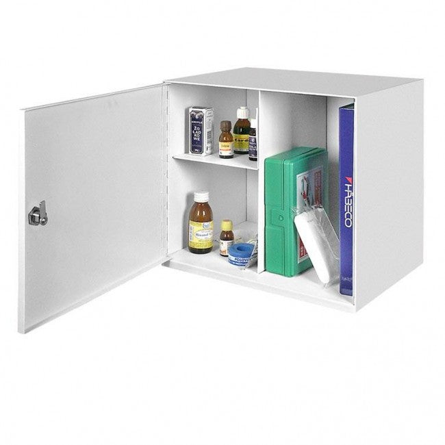 Medicinskåp med låsbart fack. Levereras med cylinderlås och 2st nycklar.Utvändiga mått: Höjd: 385mm Bredd: 400mm Djup: 300mmVikt 9kgGår även att få med kodlås