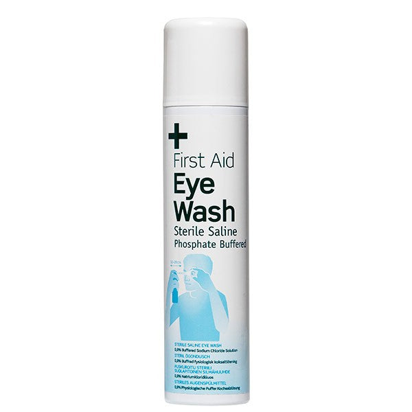 Eyespray sprayflaska 250 ml innehållande en fosfatbuffrad steril koksaltlösning. Hållbarhetstid 3 år. Spoltid minst 15 min.