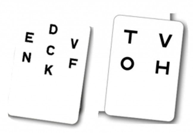Pektavla för barn.Ena sidan visas bokstäver för KM Standard och på den andra sidan visa HVOT bokstäver.