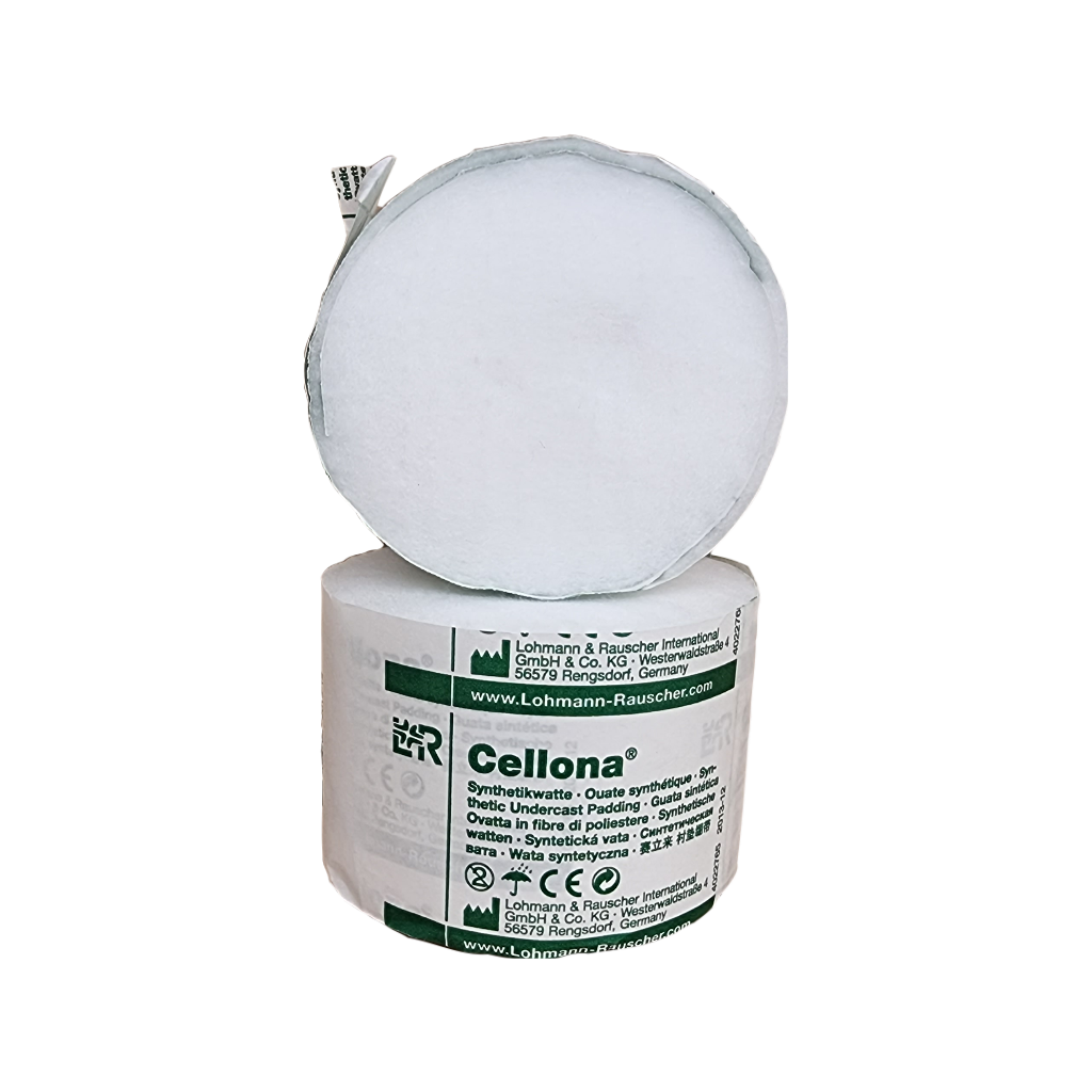 Syntetisk polstervaddCellona syntetvadd är idealisk för användningsområden där en god polstringseffekt eftersträvas, inte bara i gipssammanhang utan även vid kompressions- och sårbehandling. Vadden behåller sin mjukhet och elasticitet vid långtidsbehandling. Den är luftpermeabel och absorberar inte fukt eller väta. Vidare är vadden stark nog att tillåta applikation i cirkulära turer, samtidigt som den är lätt att riva av för en jämn och slät yta. Vadden består av100% polyester för engångsbruk. Inga optiska blekmedel har används i tillverkningsprocessen. Steriliserbar i autoklav 121ºC. Finns också sterilförpackad.
