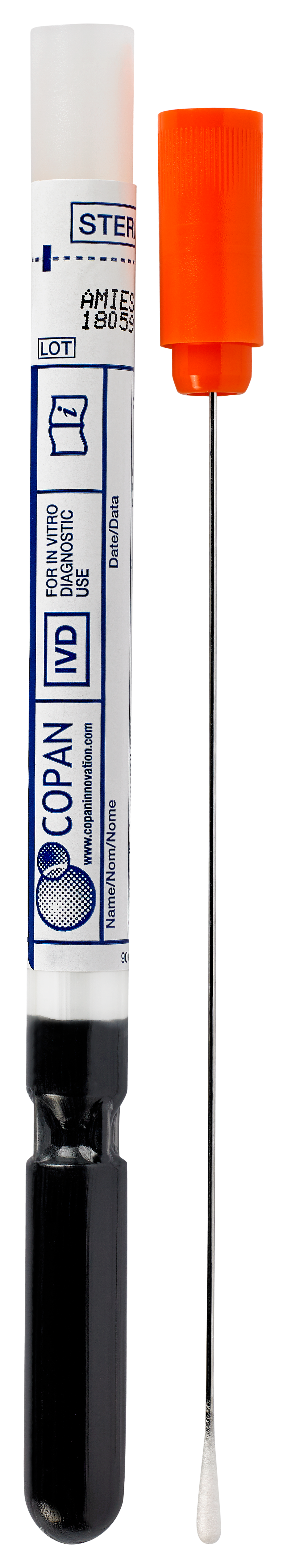 Transportrör med Amies kolade mediumBipackad provtagningspinne i aluminium med rayon minitip Orange kork För urethra, öron mm.REF: 116C.USE