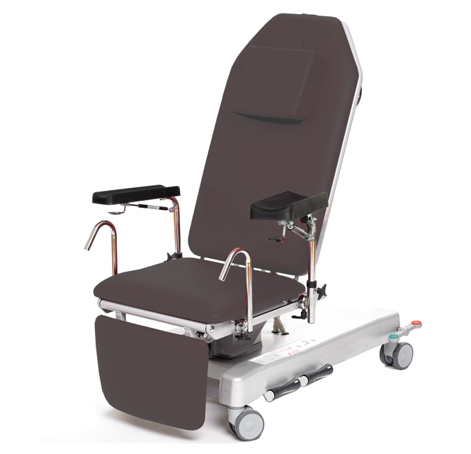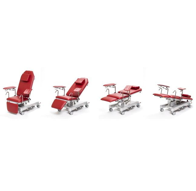 Elektriskt reglerbart. Eftersom chockläget kan regleras med fotkontroll (från stolens båda sidor), så kan sköterskan vid exempelvis svimning ha händerna fria för patient och nål.