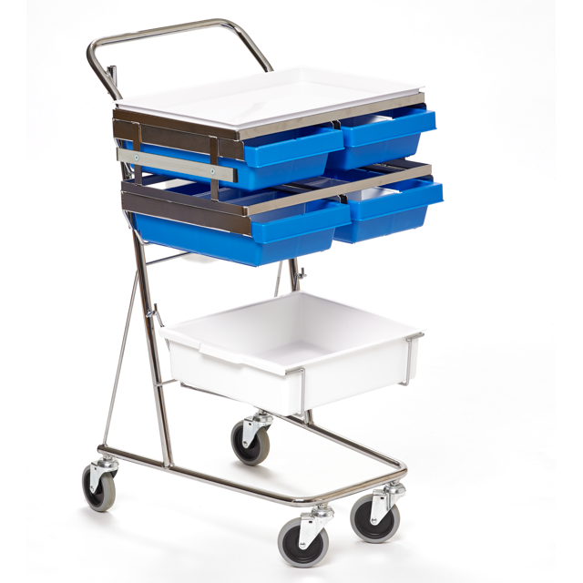 Provtagningsvagn, 4 Draglådor Bricka, Låda, Fackindelade Lådor