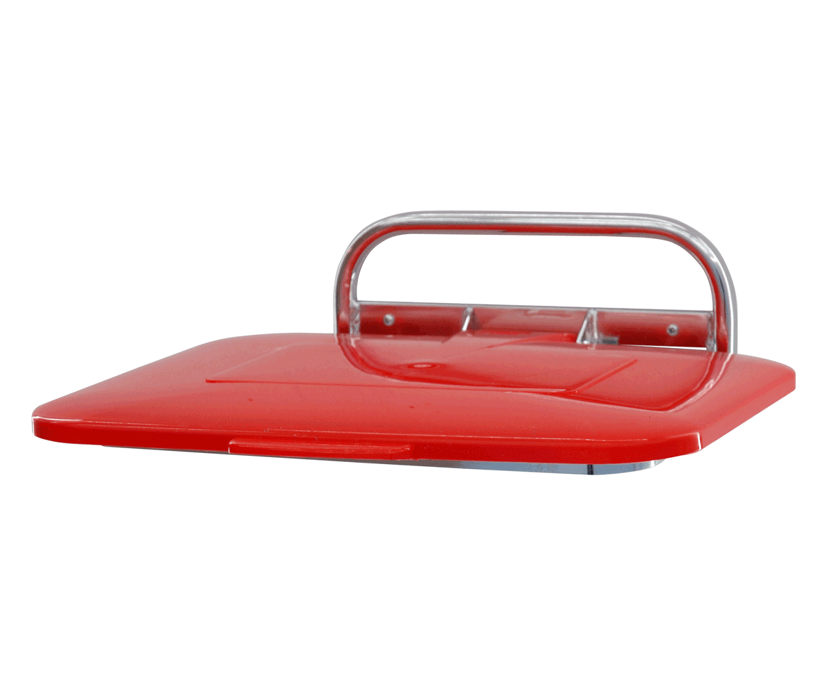 Väggfast säckhållare för sop- och tvättsäckar.Kan fällas ner mot väggen för att ta mindre plats om det inte används.Rött plastlock.