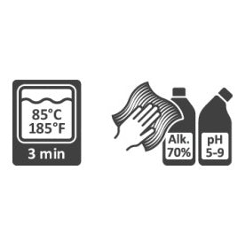 Rengör produkten med rengöringsmedel utan lösningsmedel och med pH-värde 5-9 eller med 70% desinfektionssprit. Kan vid behov dekontamineras i max 85°C.