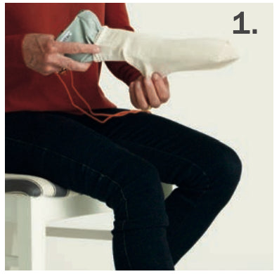Dra upp strumpan ordentligt och över krokarna.