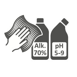 Rengör med vanliga rengöringsmedel utan slipmedel med pH-värde 5-9. Desinficeras med 70% rengöringssprit.