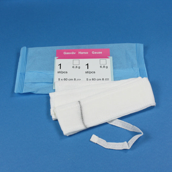 Svalgpackning Gasväv Röntgentråd Snöre 5 x 60cm / 20