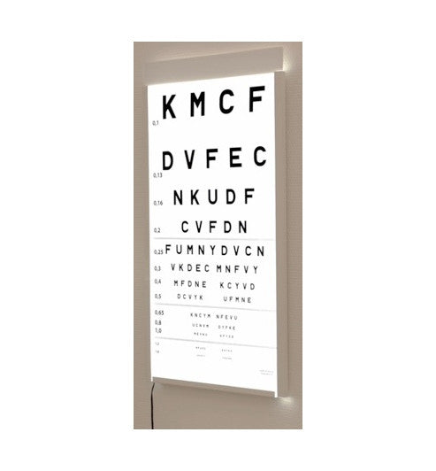 LED Belysningslåda med snellens - Logaritmisk med rader från 0,1 till 1,6. Testavstånd: 3 meterBelysningspanelen med LED är endast 12 mm djup.Går att byta mellen flera olika tavlor.