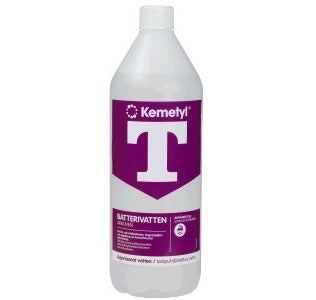 Kemetyl T-Vatten är ett avjoniserat vatten som är idealiskt för bilbatterier, båtbatterier, ångstrykjärn, luftfuktare samt för säker spädning av koncentrerad kylarvätska. Det avjoniserade vattnet har gjorts rent på ämnen som finns i vanligt vatten, bland annat salter och joner och har även behandlats mot mikroorganismer.