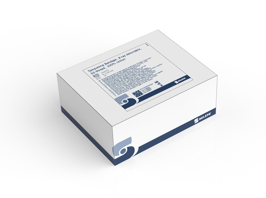 SELEFA® Tamponeringsbandage, röntgendetekterbart, sterilt är tillverkat av gasväv som uppfyller kraven i standarden SS-EN 14079, vilket innebär att bandaget är mjukt och har goda absorberande egenskaper. Tillverkad av miljövänliga blekta bomullsfibrer. Ökad säkerhet för patienten garanteras genom de vävda kanterna som eliminerar risken för lösa trådar. De kan användas för dränering av vätskor eller blod under polikliniska ingrepp och kirurgiska ingrepp samt för desinfektion av operationsområdet.