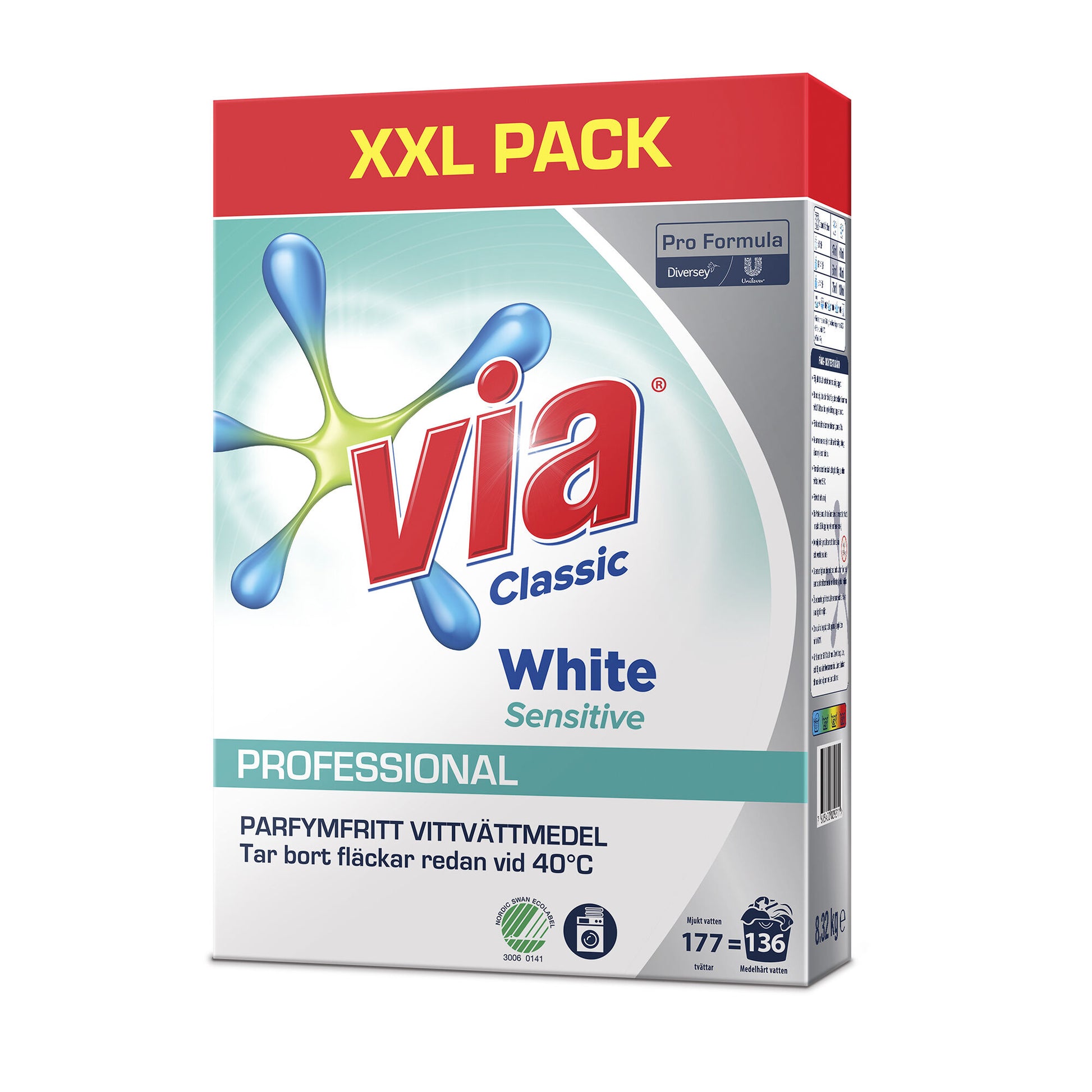 Via Pro Formula White Sensitive 8.32kg - Effektivt och drygt pulvertvättmedel utan parfym för vittvätt, passar dig som har känslig hud eller allergi