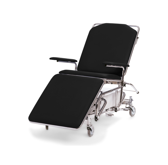 Tredelad brits med hjärtläge, hydraulisk. Förutom att passa utmärkt för allmänundersökning, är den tredelade britsen med sitt hjärtläge anpassad för exempelvis EEG-undersökningar.