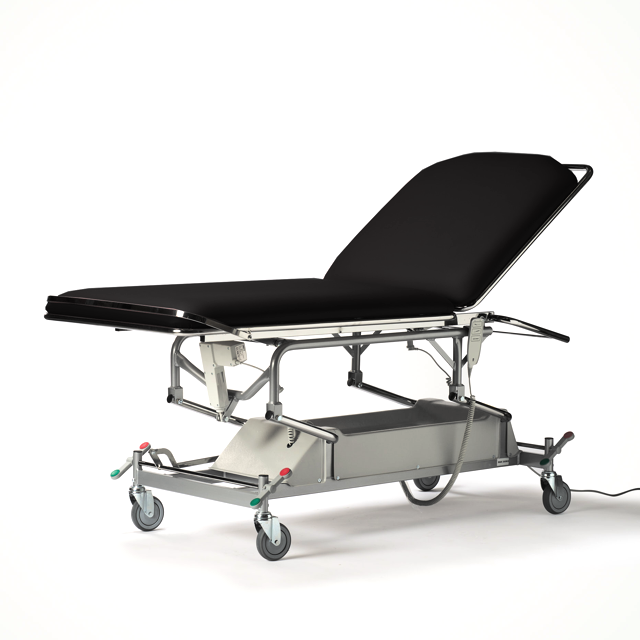 Undersökningsbrits för tyngre patienter. Varje detalj är anpassad för upp till 300 kg belastning. Extra stoppning, grövre dimensioner.